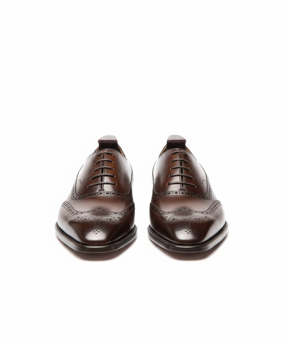 Handcrafted from burnished leather with a rich brown patina that deepens over time. Featuring classic wingtip perforations, sleek lines, and refined stitching, it embodies British tradition with modern elegance — a versatile staple of enduring style and craftsmanship