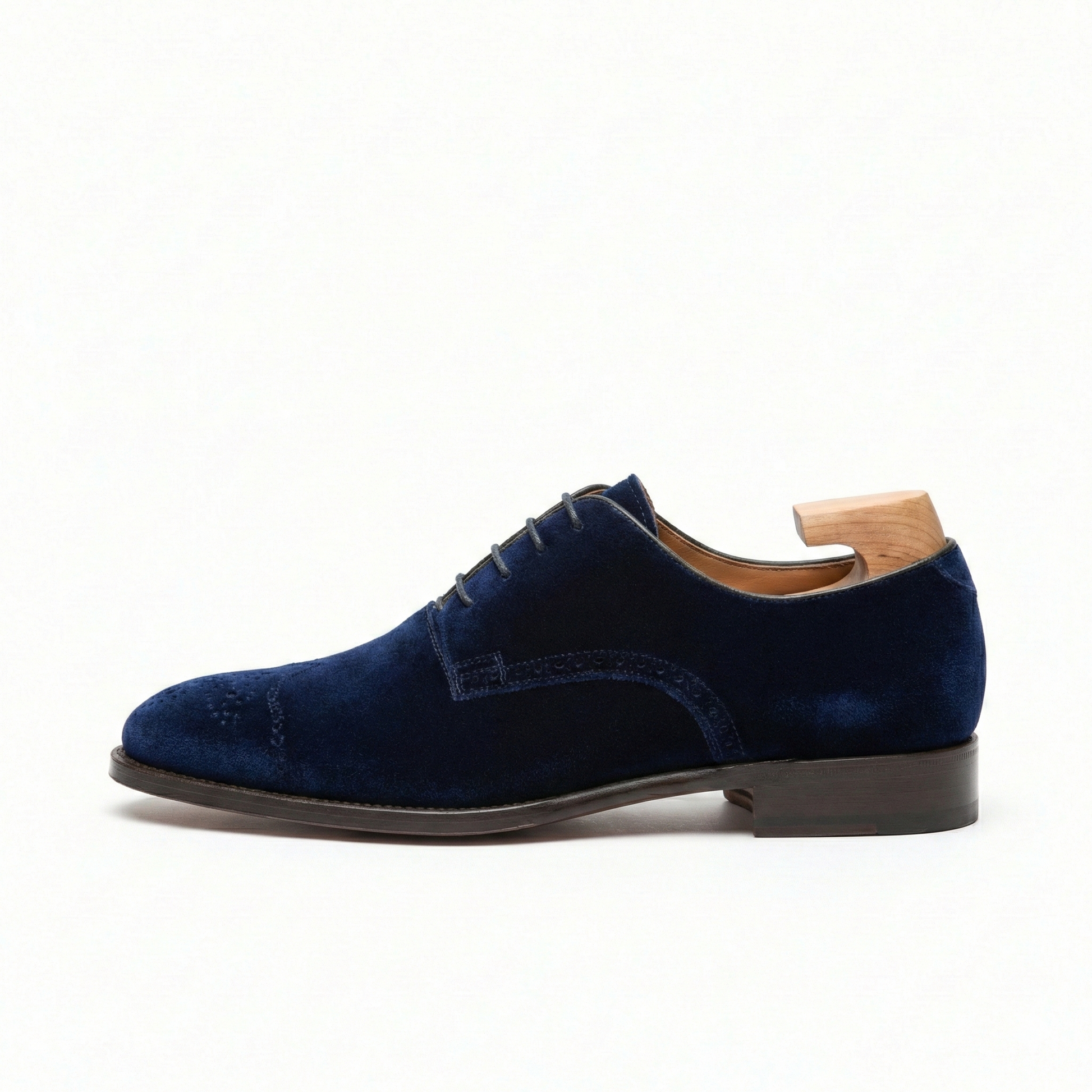 Meticulously handcrafted to exacting standards, this Derby features a premium velvet upper detailed with precise stitching and elegant leather piping that frames the foot perfectly.