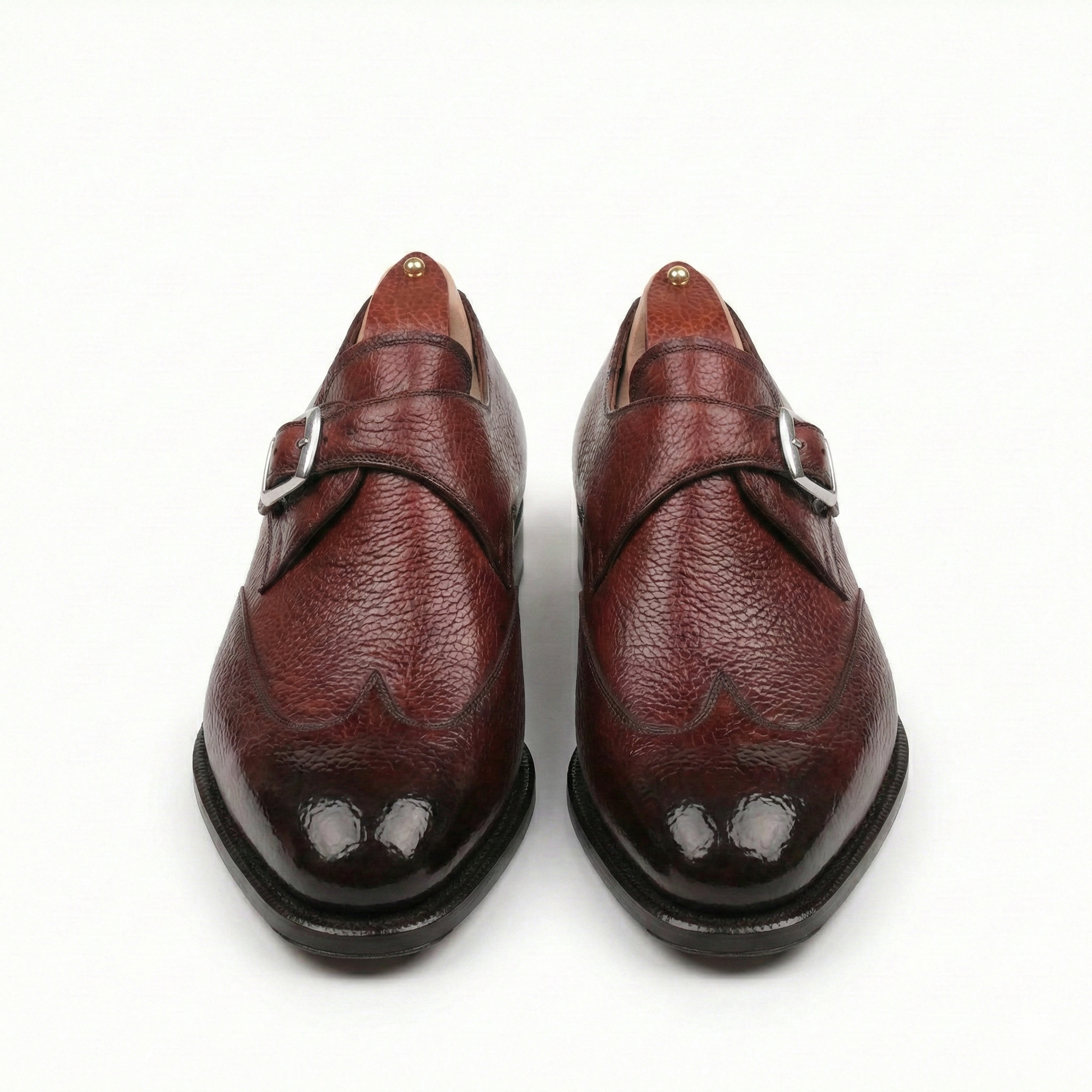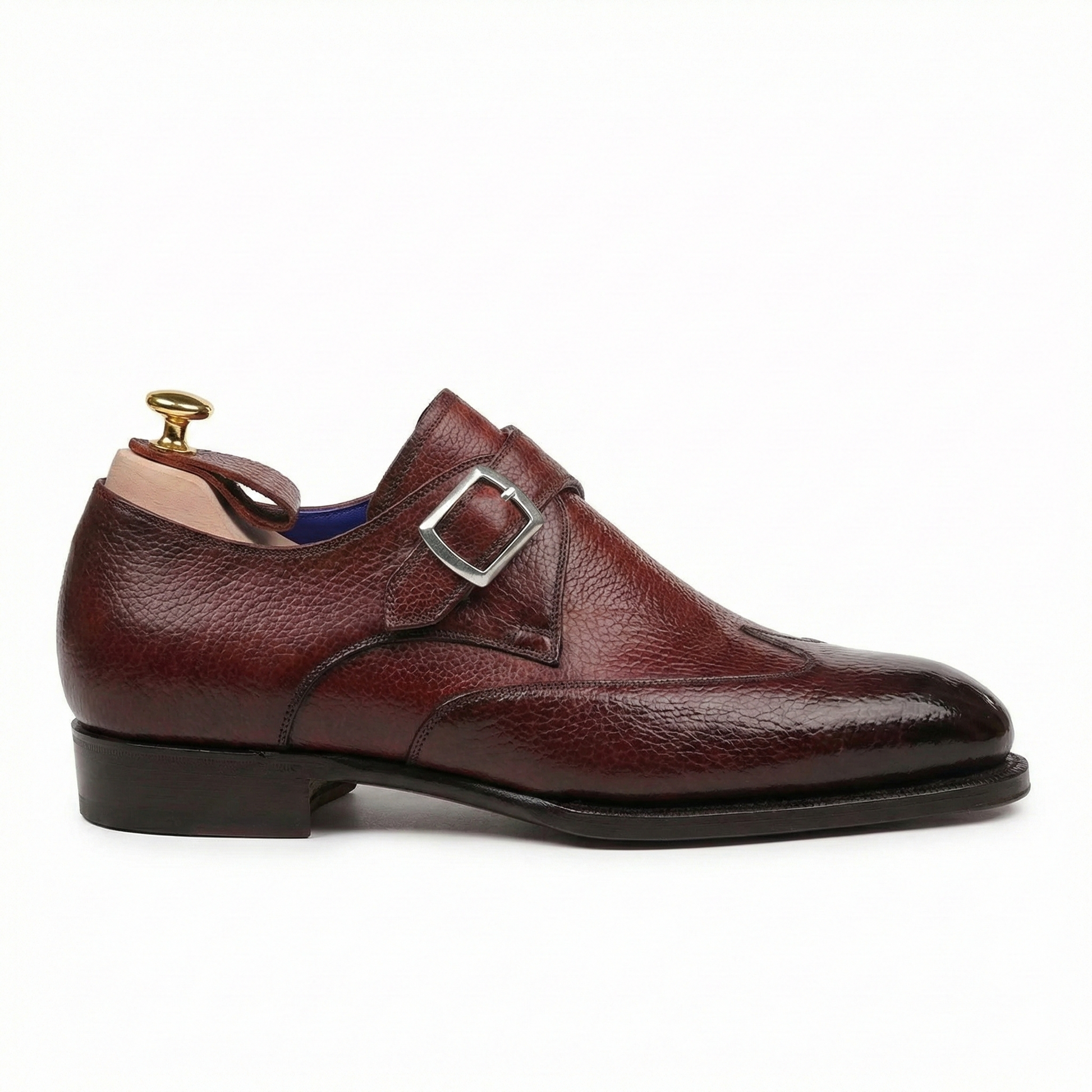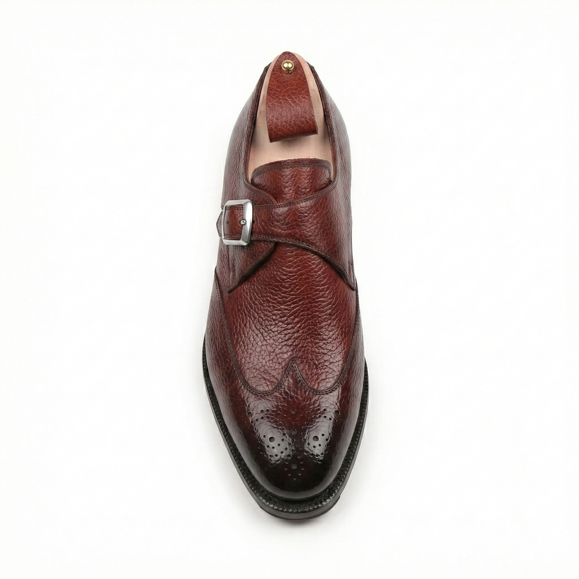 Style: A distinguished Single Monkstrap Wingtip Brogue, seamlessly blending sleek contemporary hardware with timeless perforation details.