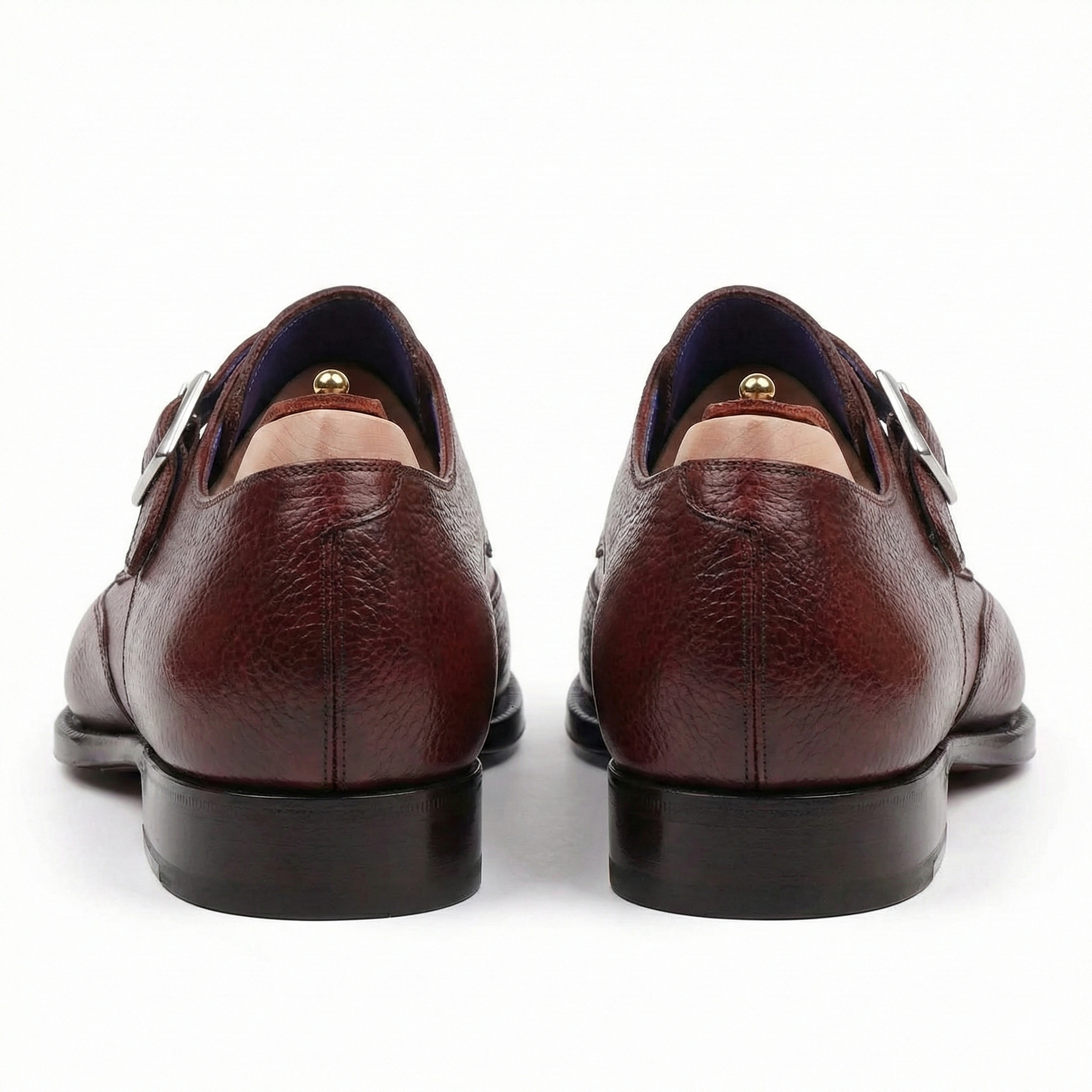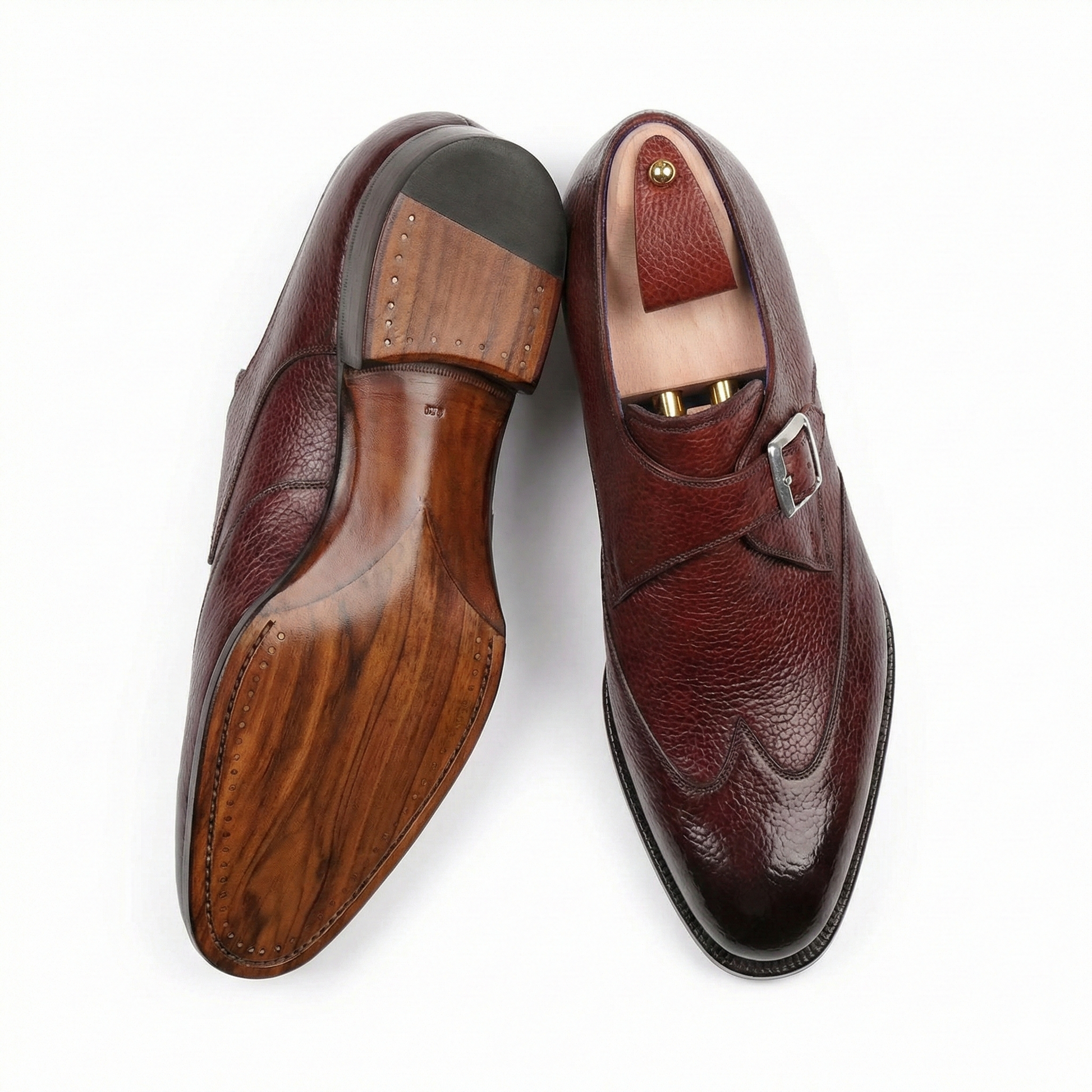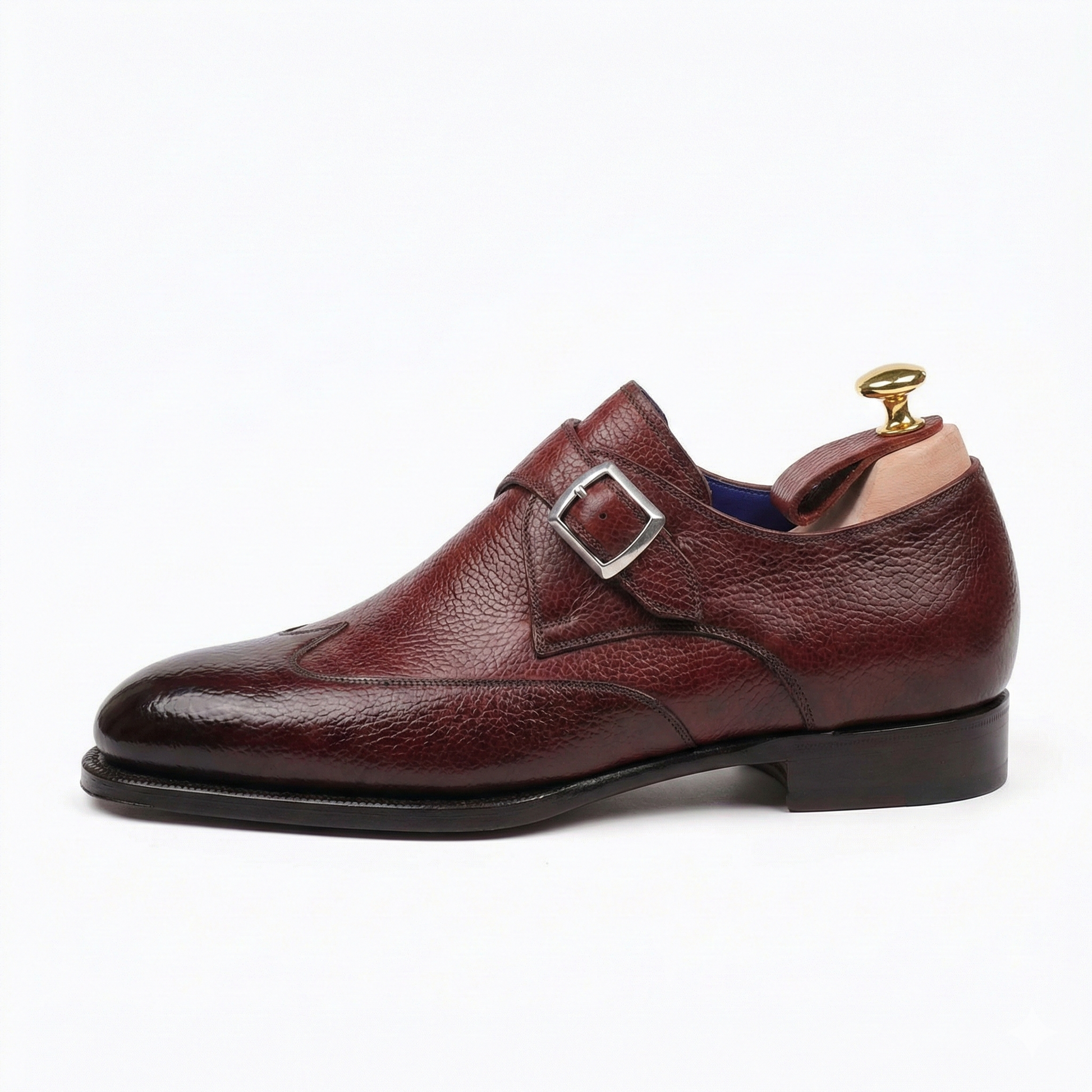 Style: A distinguished Single Monkstrap Wingtip Brogue, seamlessly blending sleek contemporary hardware with timeless perforation details.